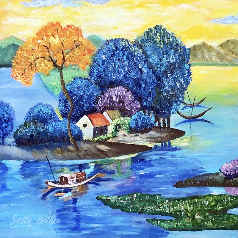 I express joy in life through paintings; and love the endless learning in art. Some common themes in my work is Indian mythology and natural beauty.
